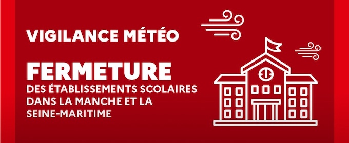 Suite à l’évolution des conditions météorologiques, monsieur le préfet a décidé la fermeture de l’ensemble des écoles et établissements scolaires de la Seine-Maritime pour la journée du vendredi 9 (…)